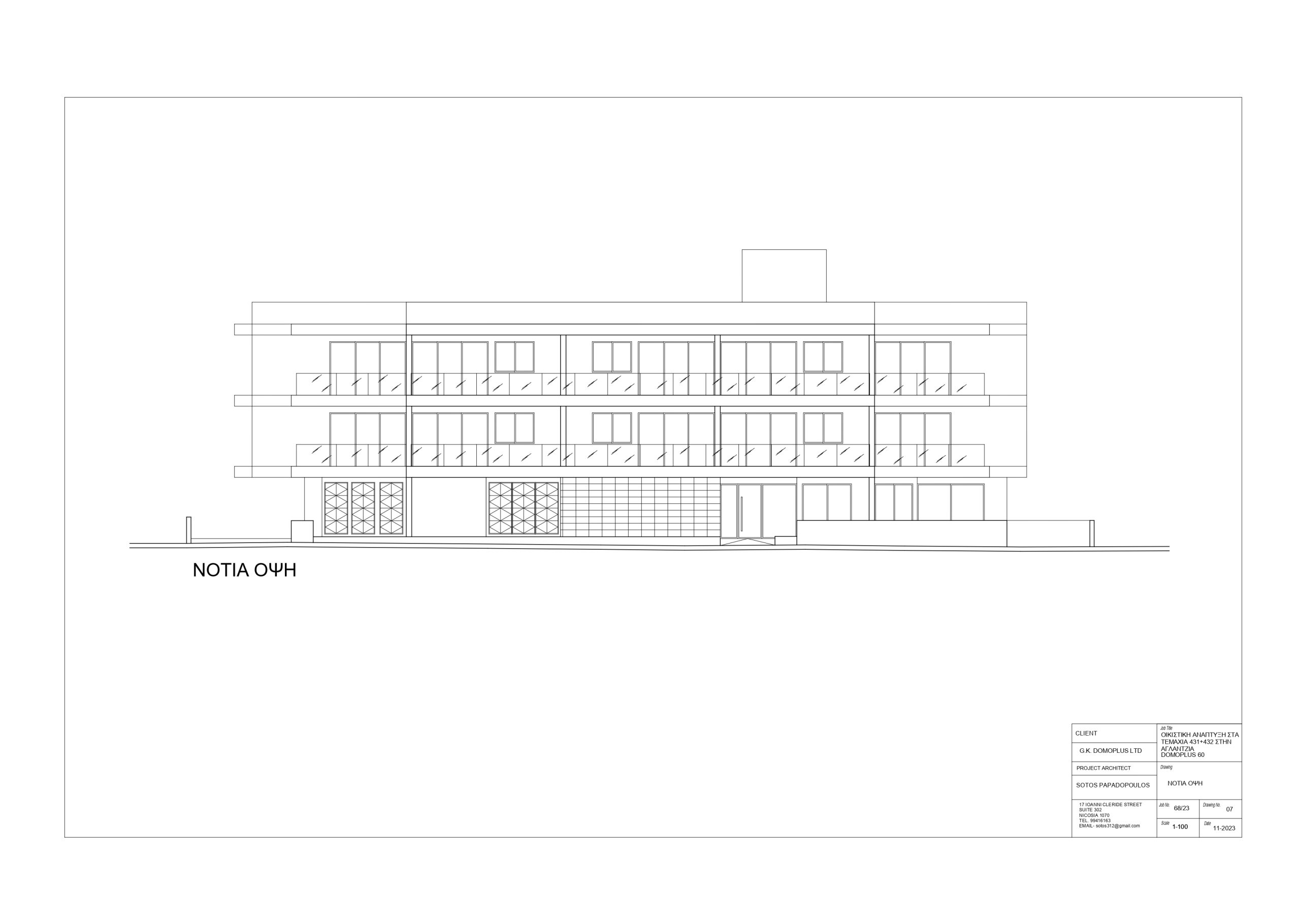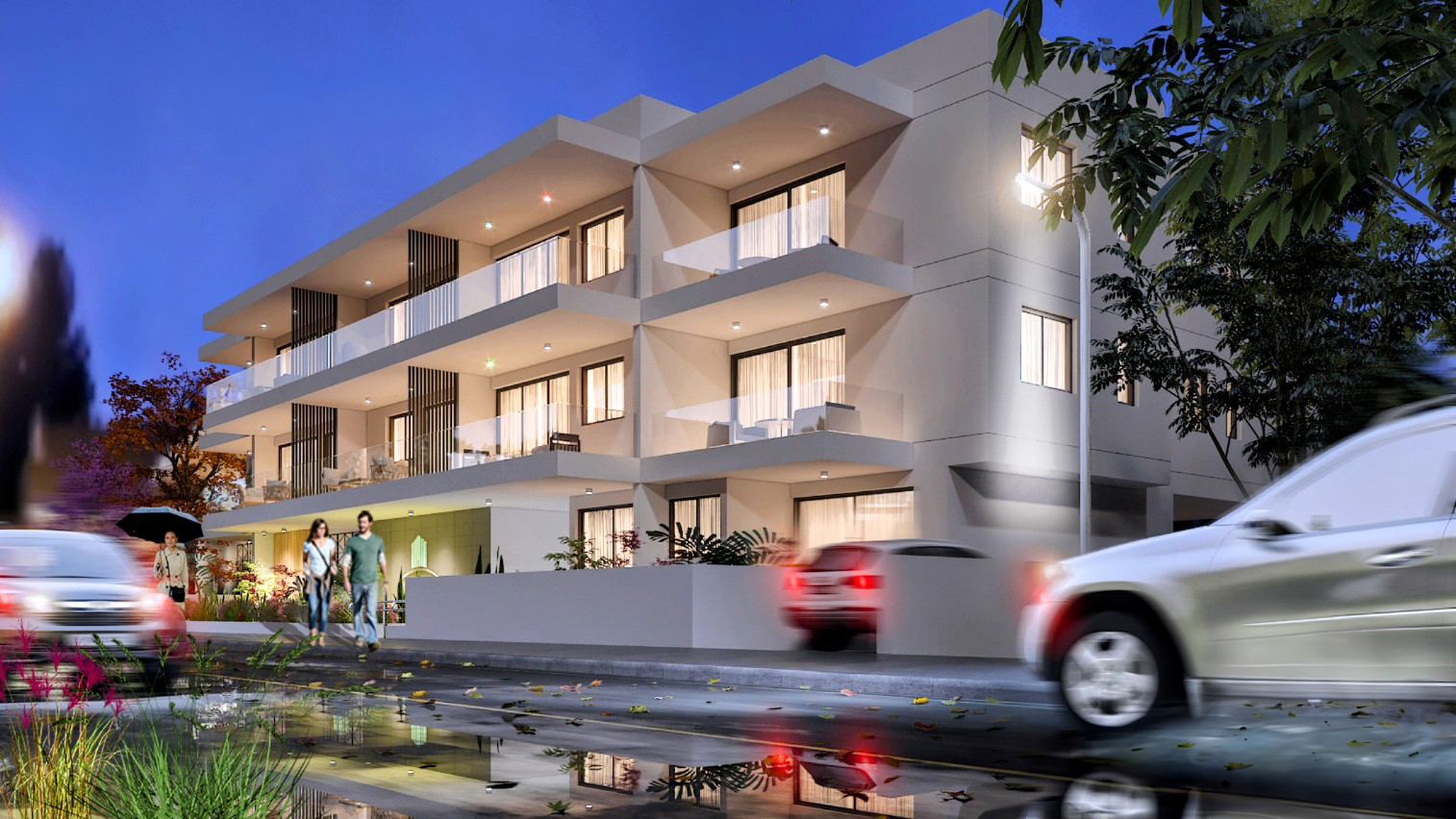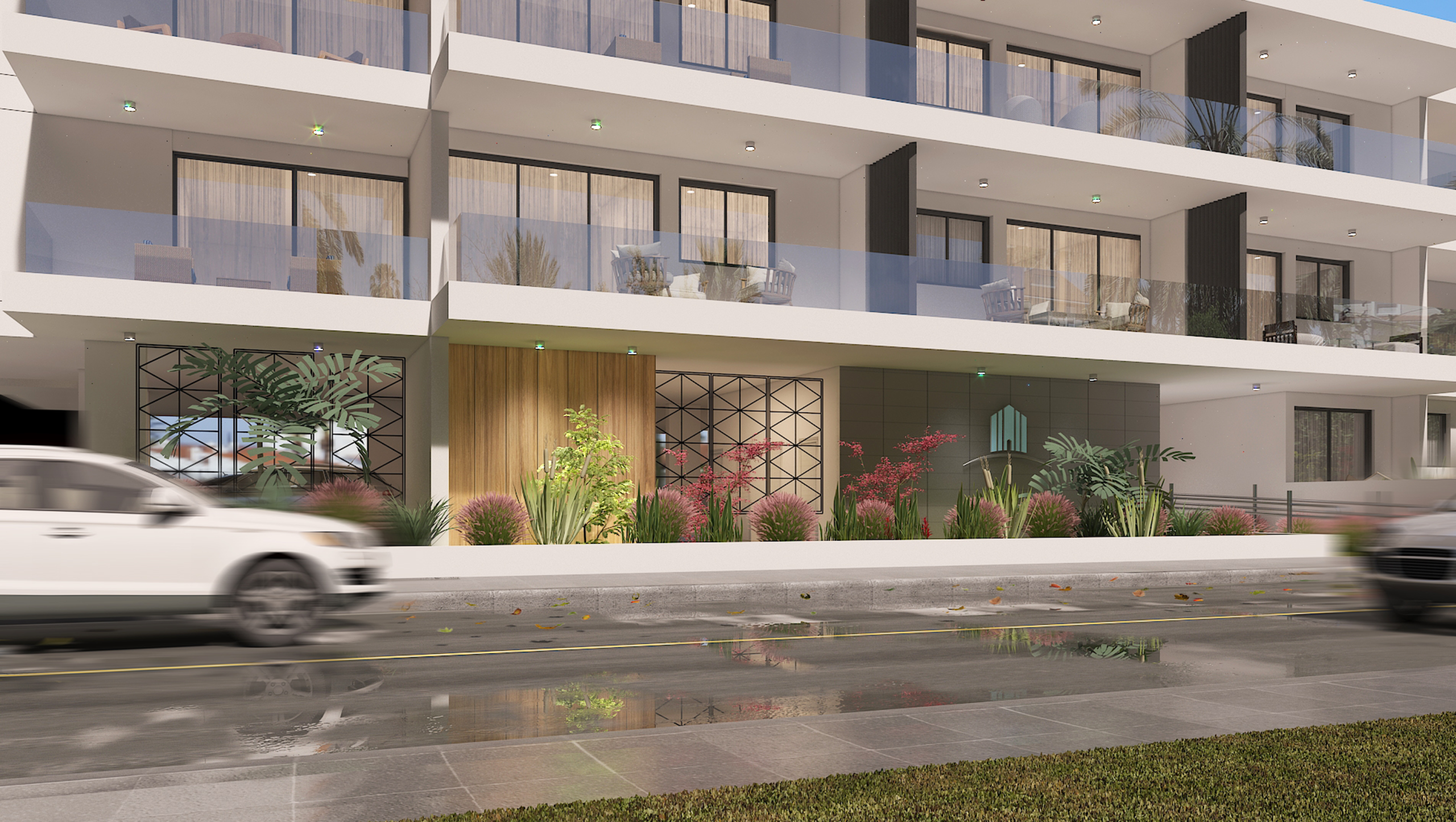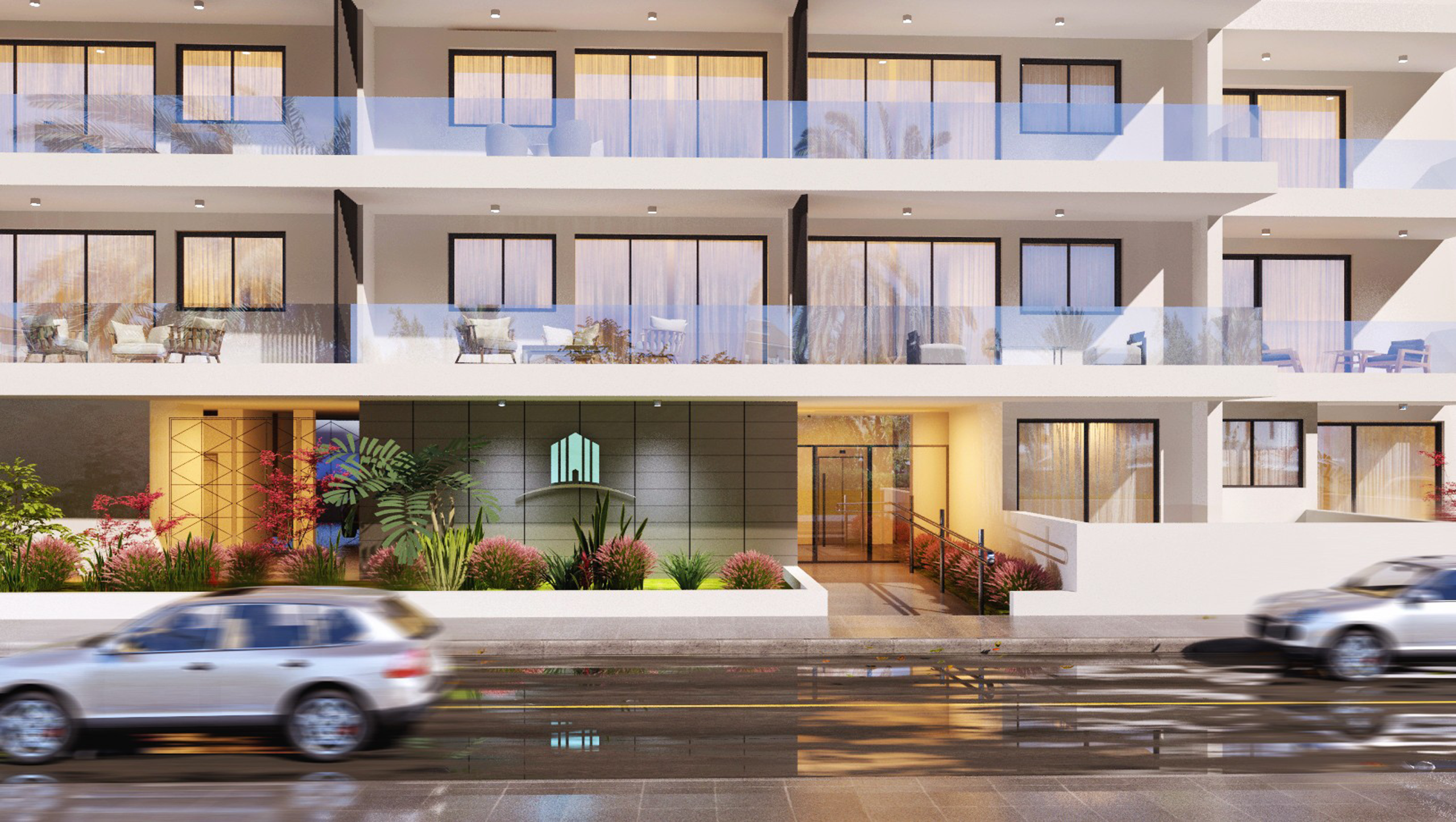 Η διώροφη οικοδομή αποτελείται από δεκαέξι (16) διαμερίσματα του ενός (1) υπνοδωματίου σε δύο ορόφους ( 1ος, 2ος) και δύο (2) διαμερίσματα studio στο ισόγειο.