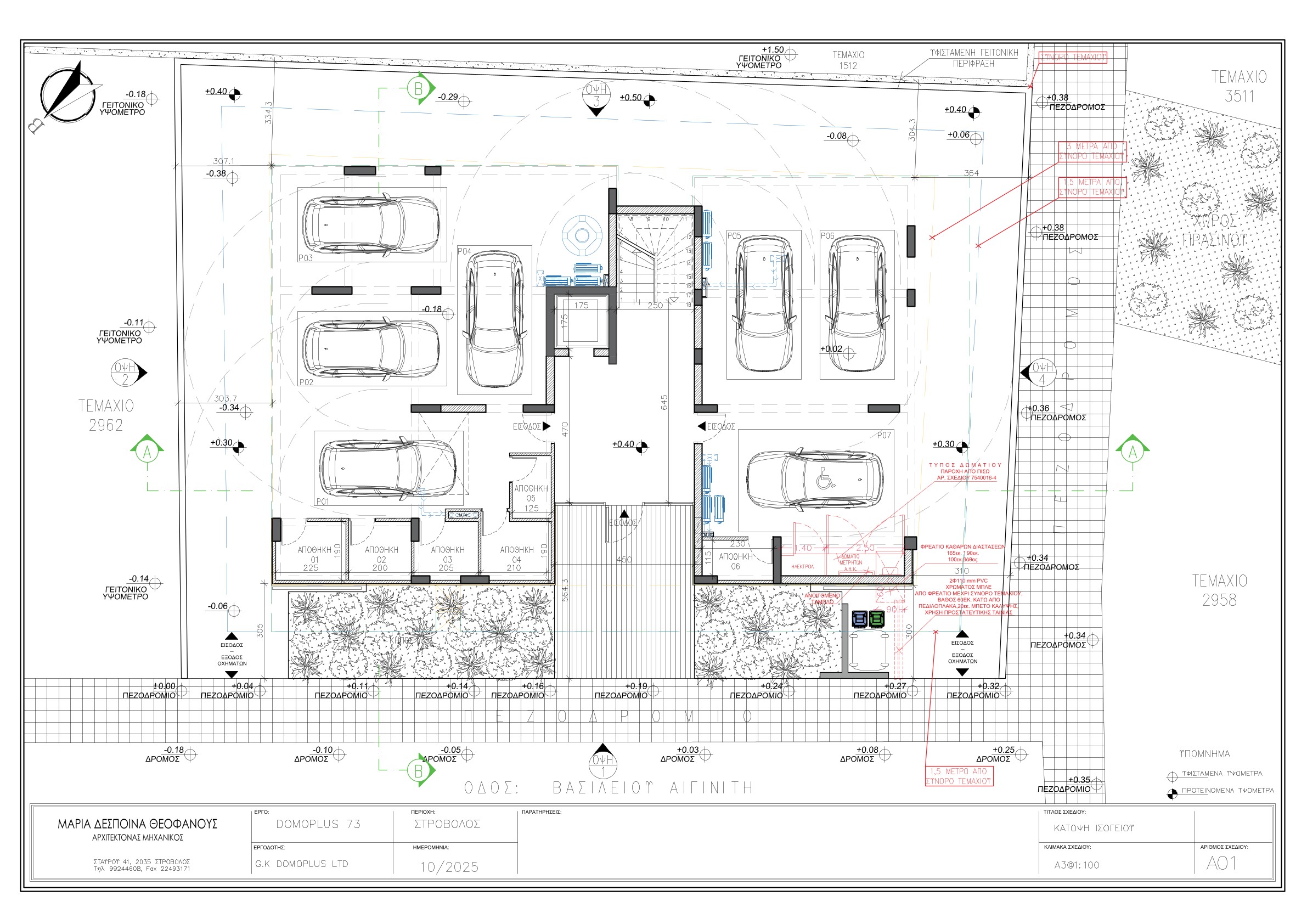 Η απόσταση της οικοδομής από τα σύνορα είναι μεγάλη για την ομαλή κυκλοφορία των αυτοκινήτων εντός και εκτός του χώρου στάθμευσης.