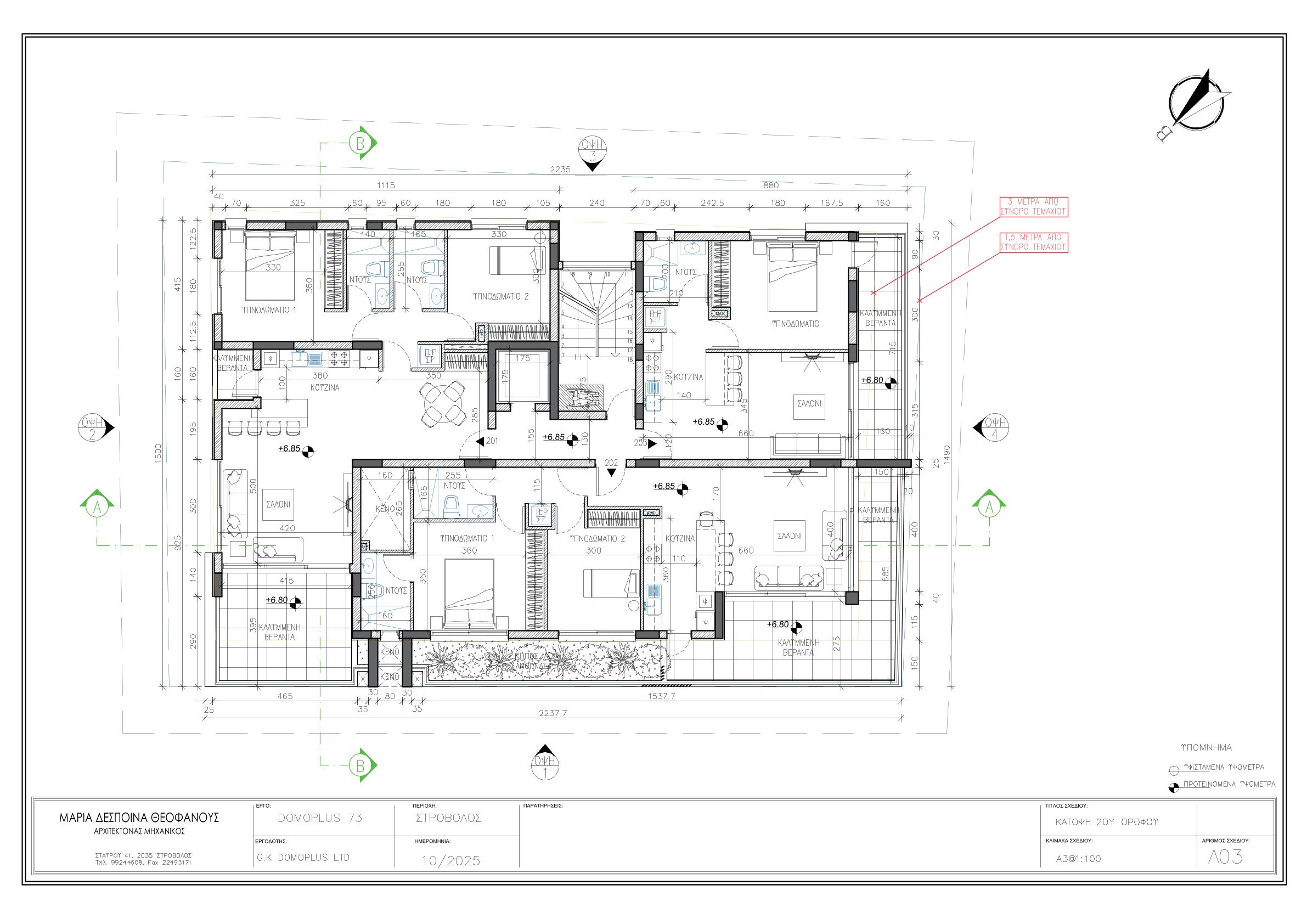 Το έργο Domoplus 73 κτίζεται σε προνομιακό οικόπεδο στο Δήμο Στροβόλου. Η περιοχή θεωρείται προνομιακή με εύκολη πρόσβαση προς το κέντρο ή εκτός Λευκωσίας. Ο προσανατολισμός του οικοπέδου και της πολυκατοικίας με την σωστή σχεδιαστική λειτουργικότητα της, προσδίδουν σ’ αυτήν ήλιο τον χειμώνα και δροσιά το καλοκαίρι.