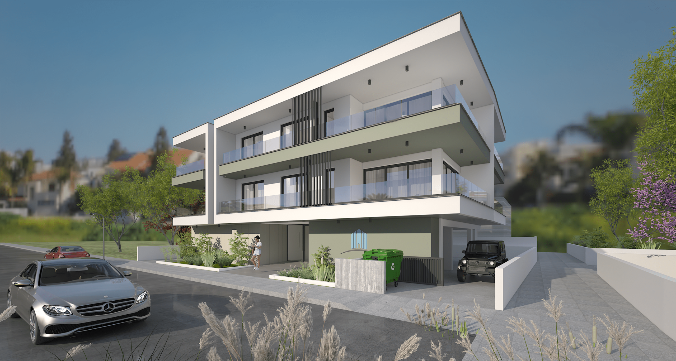 Κάθε όροφος διαθέτουν από τρία (3) διαμερίσματα. Ένα του ενός (1) υπνοδωματίου και δύο των δύο (2) υπνοδωματίων.