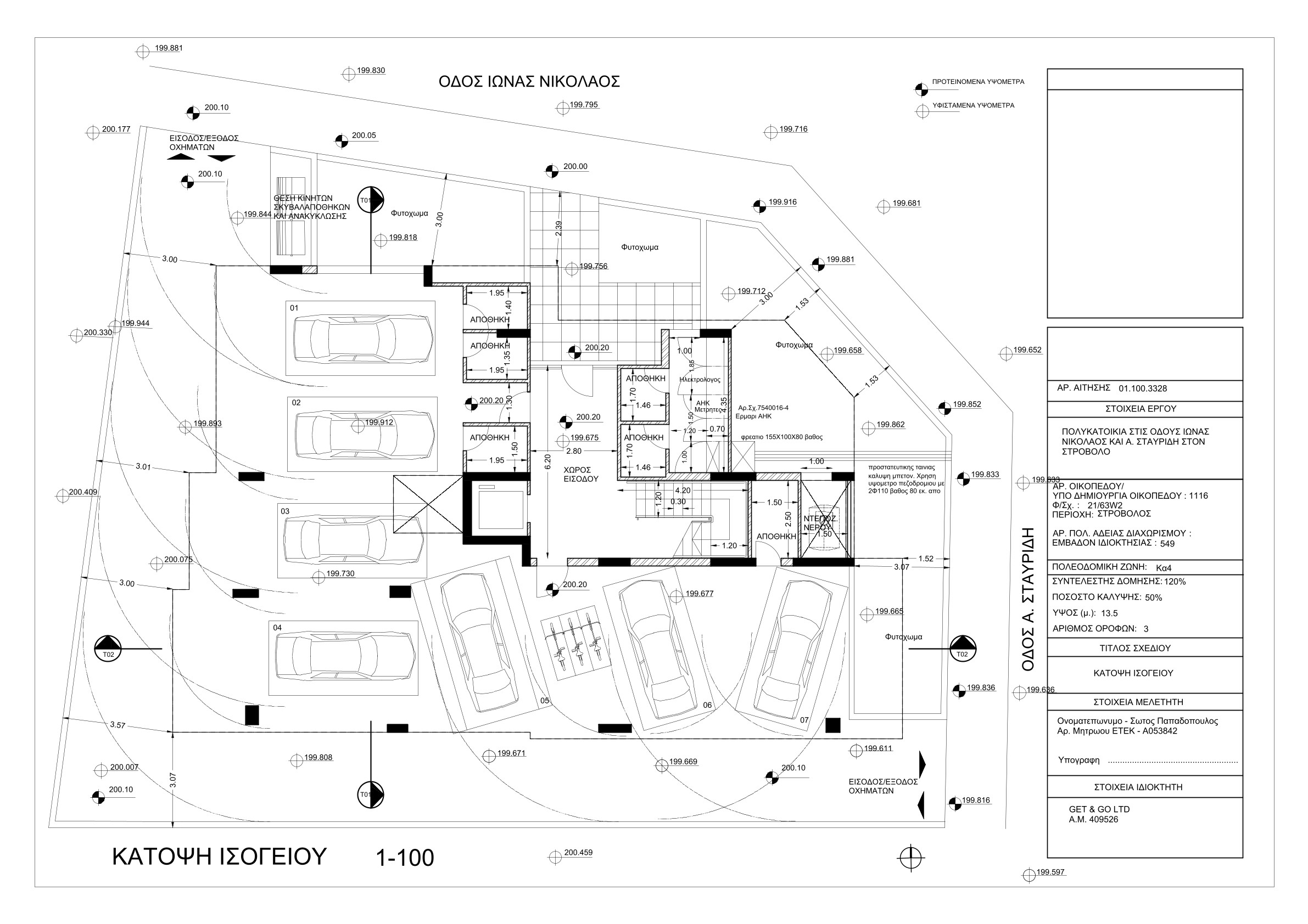 Στο υπόστεγο υπάρχουν αποθήκες και λειτουργικά διαμορφωμένοι χώροι στάθμευσης, για κάθε διαμέρισμα. Η απόσταση της οικοδομής από τα σύνορα είναι μεγάλη για την ομαλή κυκλοφορία των αυτοκινήτων εντός και εκτός του χώρου στάθμευσης.