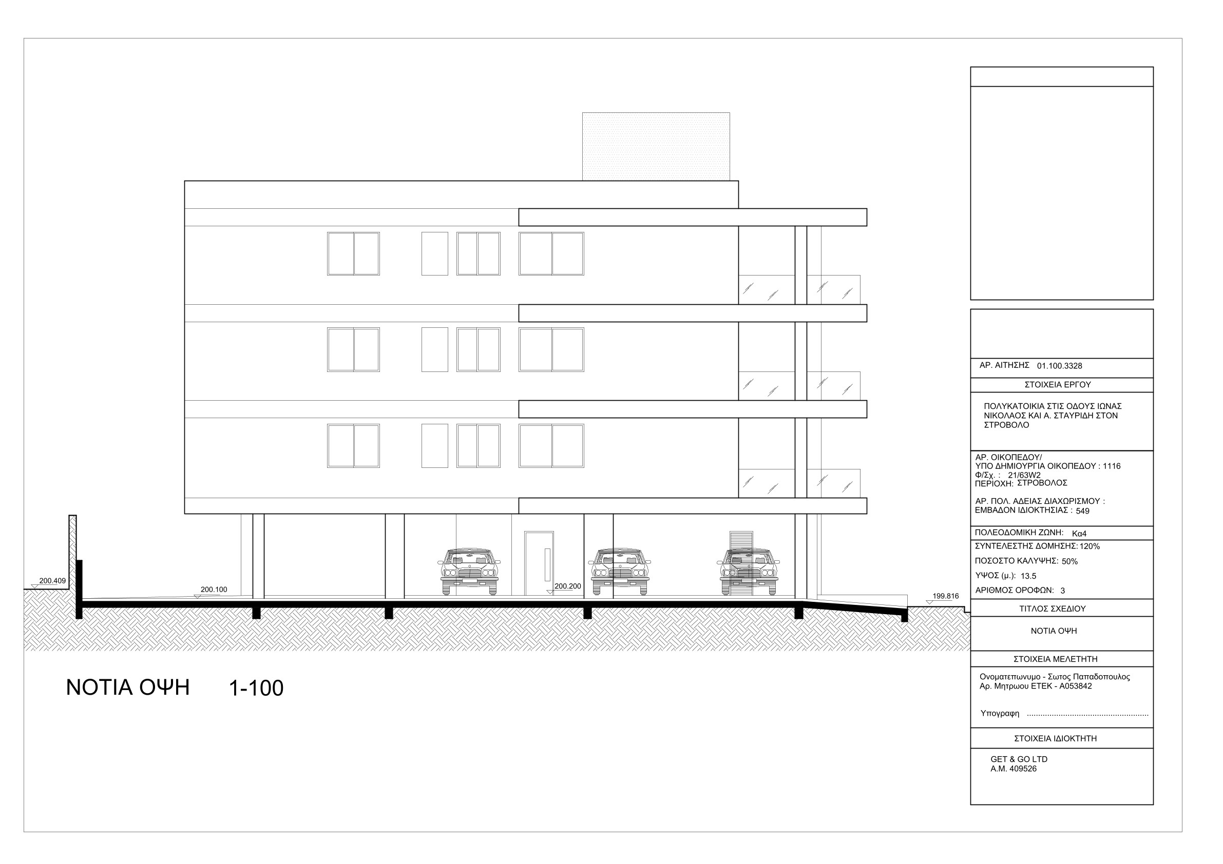 Η τριώροφη οικοδομή αποτελείται από έξι (6) διαμερίσματα των τριών και δύο υπνοδωματίων.